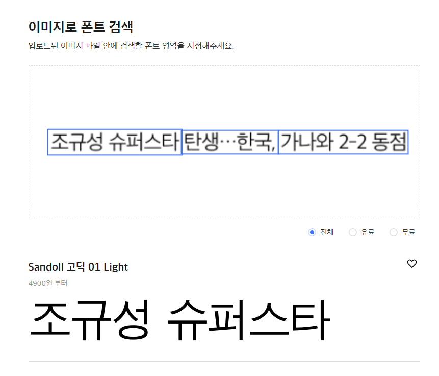 이런식으로 해당 이미지와 유사한 폰트들을 리스트로 보여줍니다.